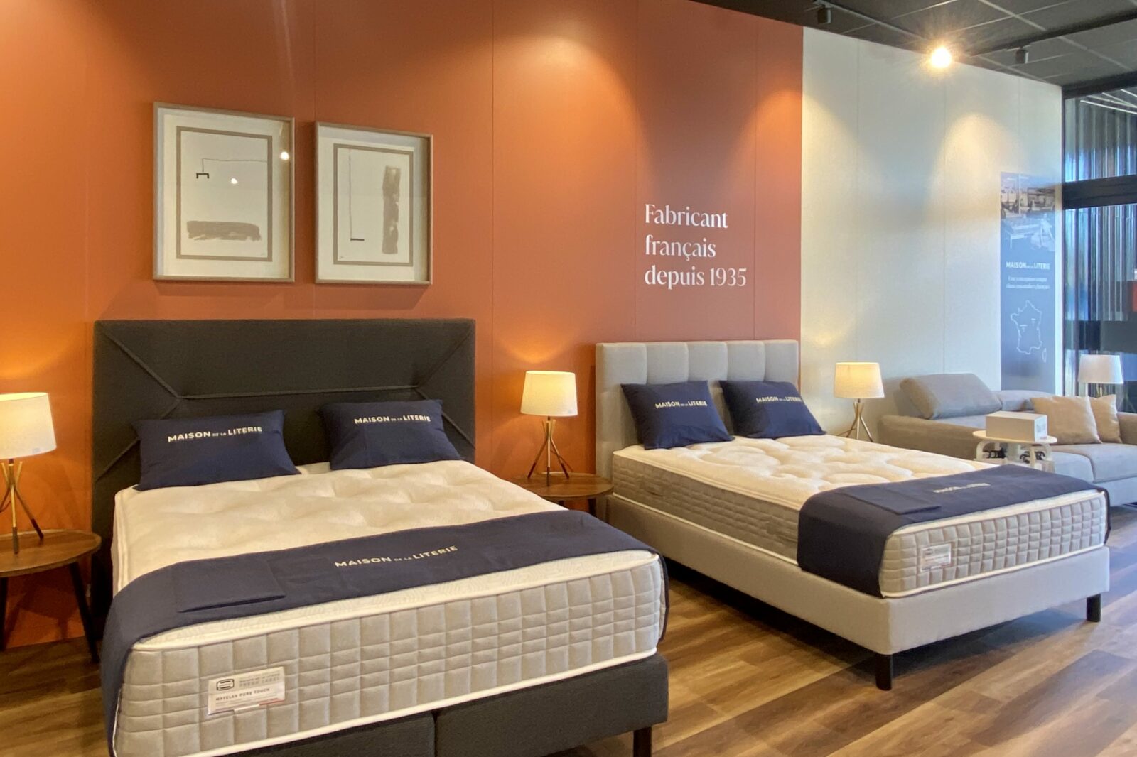 Dans le respect des dernières normes du nouveau concept magasin Maison de la Literie, l’aménagement intérieur de cette nouvelle unité met en valeur les différentes zones du local et offre un parcours d’achat qui se veut « fluide et immersif ». Chaque espace est ainsi pensé pour accompagner le client dans sa découverte des produits, avec une scénographie destinée à valoriser le confort et l’innovation. L’offre de décoration et d’accessoires du nouveau concept répond quant à elle au besoin de se sentir « bien chez soi », tout en offrant un potentiel non négligeable de ventes additionnelles (pouvant aller, nous dit-on, jusqu’à 20 % du chiffre d’affaires). En outre, la mise en scène des accessoires (œuvres encadrées, miroirs, chevets, lampes, consoles, etc.) a été pensée à la fois pour enrichir l’expérience en magasin et renforcer la démarche haut de gamme de la marque, ceci en élargissant son offre sur l’univers de la chambre dans sa globalité.