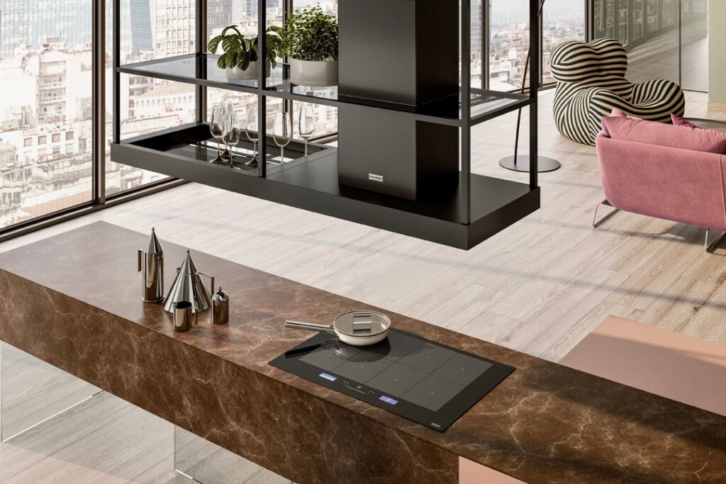 Avec sa nouvelle hotte îlot “Mythos T-Shelf”, Franke veut concilier design et performances