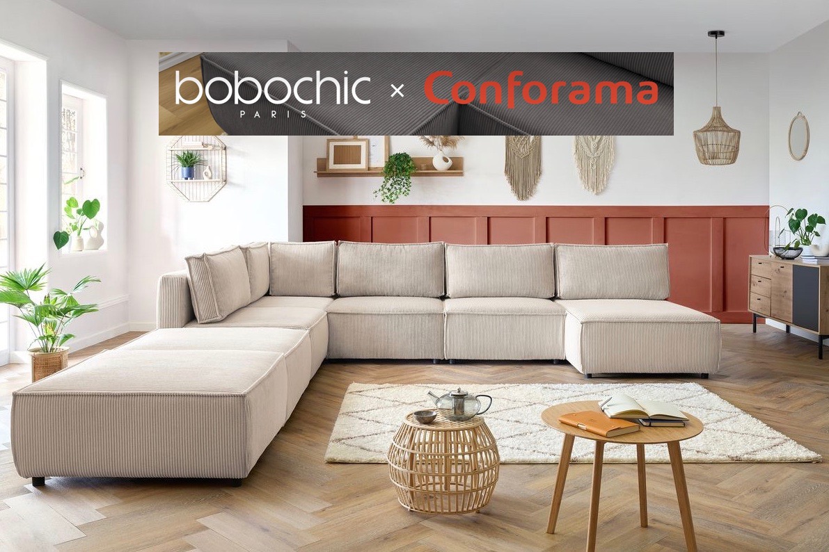 Au programme de ce partenariat entre le distributeur et la “DNVB lifestyle de l’ameublement” (“Digital Native Vertical Brand”) : un travail conjoint des équipes “meuble & décoration” des deux marques pour unir leurs identités et savoir-faire respectifs, « qui a permis d’aboutir à la création de plusieurs produits uniques, parmi lesquels des canapés, des coussins et des tapis ». Ceux-ci seront accessibles dans les magasins Conforama et sur le site internet “conforama.fr” à partir du 25 juillet. Des corners Bobochic feront également progressivement leur apparition dans les magasins Conforama.
