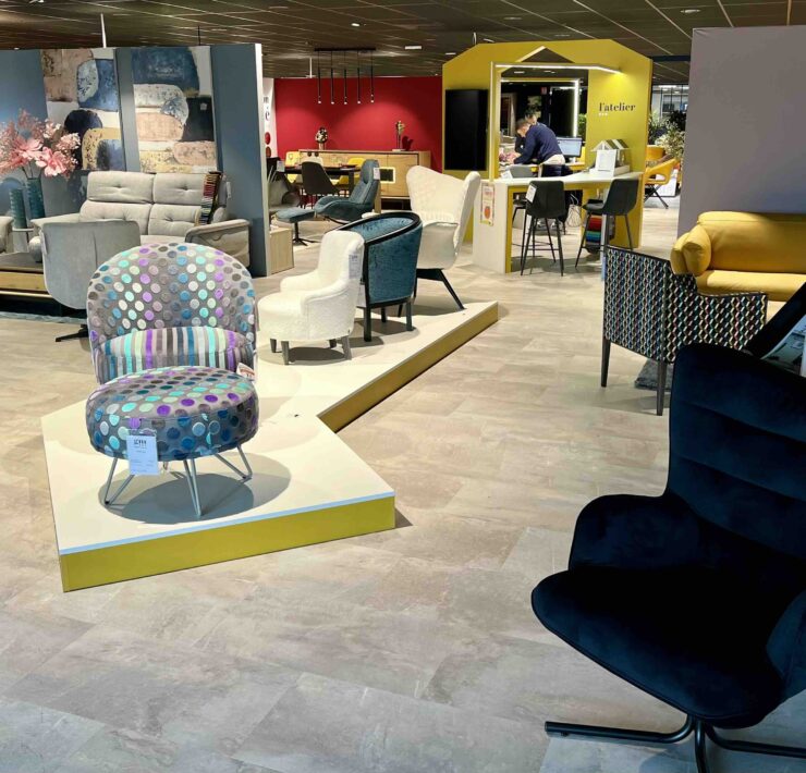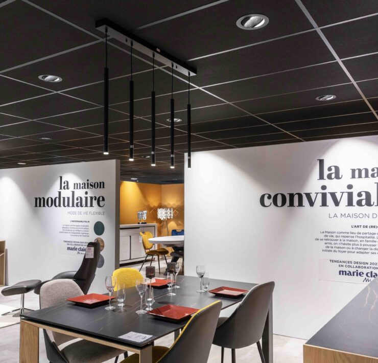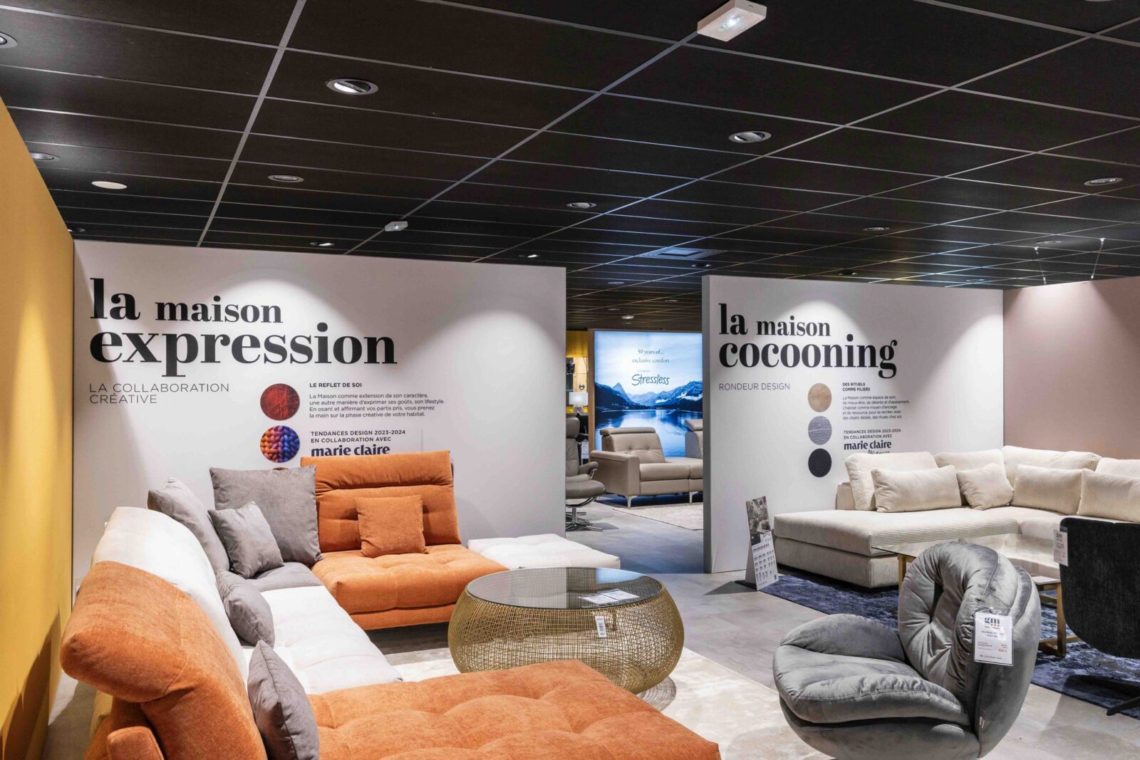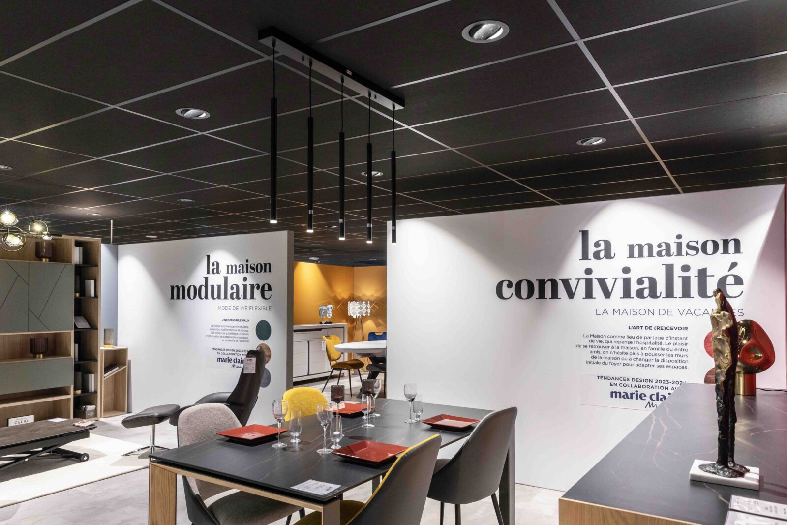 Après avoir (en 2022) mené une étude avec BVA et l’agence de communication Aire, afin, dixit Christel Talbot-Lamarre, « d’identifier les besoins de nos clients-consommateurs d’aujourd’hui et ceux de demain » (étude qui a notamment révélé que, si 7 clients en phase d’achat sur 10 passent par la case “Internet”, la plupart éprouve toujours le besoin de se rendre ensuite en magasin, pour toucher les produits et parfaire leurs projets ; tiens, tiens !), le groupe a, deux années durant, travaillé avec l’agence de “branding” et de design Desdoigts & Associés et Jérôme Pacaud, afin de « traduire l’ADN de la marque dans un magasin du futur ». Puis, Desdoigts & Associés faisant partie du groupe de presse Marie Claire (appellation éponyme de son célèbre magazine féminin), les équipes de l’agence et de la centrale ont mis sur pied « une approche scénographique inspirante », associée à « un parcours expérientiel », qui s’appuie sur quatre tendances majeures, identifiées par les experts du magazine de décoration et de design “Marie Claire Maison”, ceci pour une durée de deux ans.