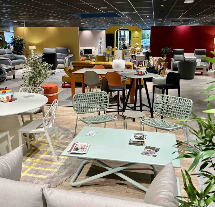 Enfin, en droite ligne de ces quatre “maisons”, le consommateur est amené à découvrir un autre pilier de ce nouveau concept : l’espace “in/out”. Ce dernier, fruit d’un partenariat noué entre la marque italienne Connubia (filiale du bien connu Calligaris) et Géant du Meuble, propose une offre de chaises, tables et autres meubles de complément (disponibles à la contremarque) pouvant aussi bien meubler un intérieur (“in”), qu’un extérieur (“out”), tendance largement répandue chez nos concitoyens depuis les fameux confinements imposés par la pandémie !
