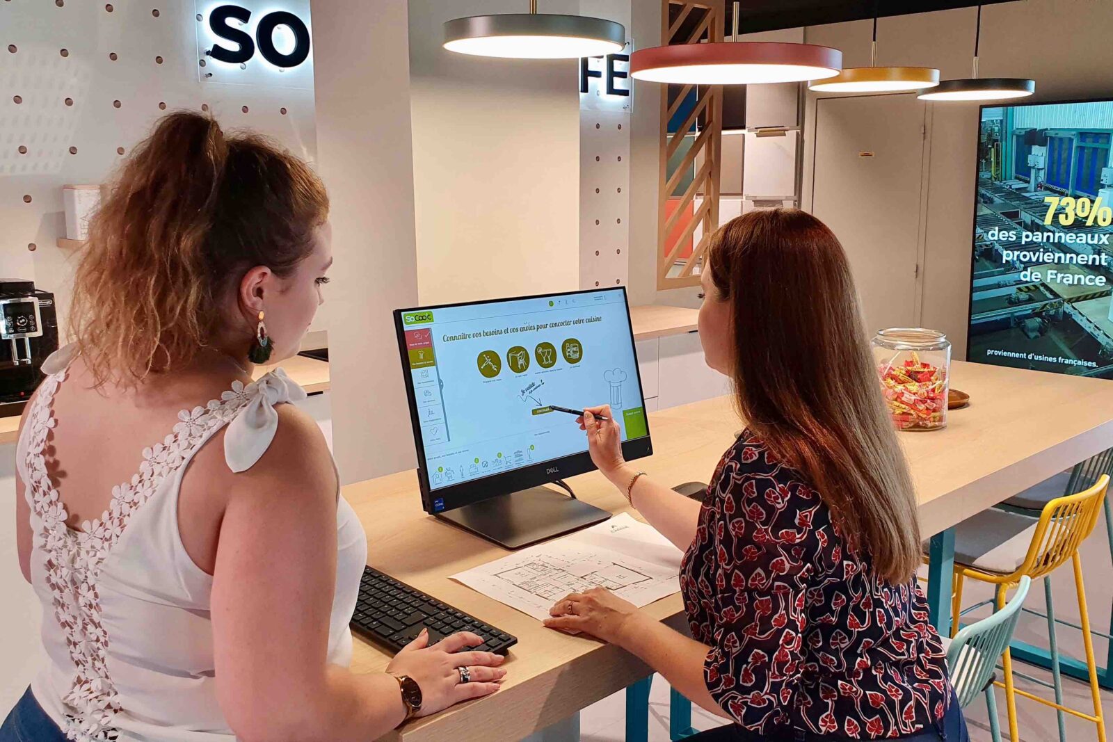 Le nouveau concept décloisonne les différents espaces du magasin pour les rendre plus accessibles et plus ouverts. Tous les espaces sont connectés et visibles à tout moment du parcours. Le magasin sert d’appui pédagogique pour le “Kitchener” (le concepteur-vendeur selon SoCoo’c), qui explique en toute transparence la composition du prix d’une cuisine, notamment ce qui impacte à la hausse ou à la baisse le budget final du client. Dès son premier rendez-vous, le consommateur obtient le plan, les vues 3D et le devis détaillé de sa cuisine.