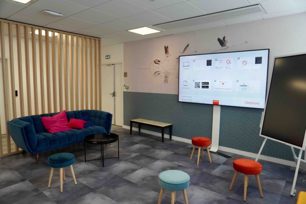 Les bureaux du nouveau siège social du groupe FBD proposent des espaces ouverts et flexibles. Ici : la salle de “brainstorming”.