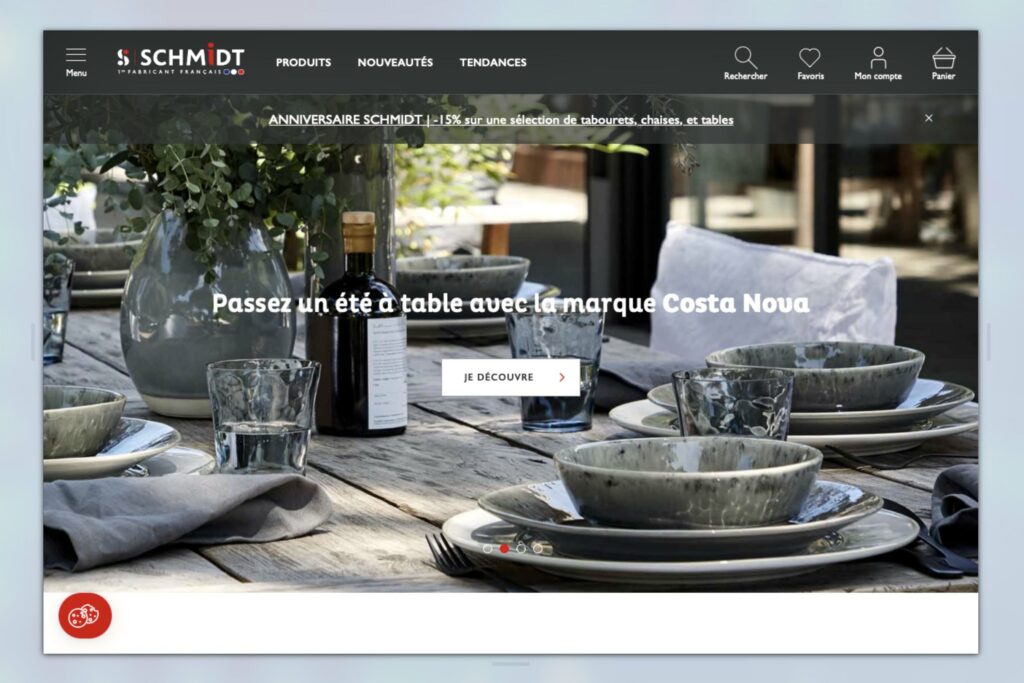 Si, au départ, le site proposait essentiellement des accessoires de cuisine de la marque (range-couverts, crédences…), l’offre a très vite évolué, pour investir l’univers de la décoration (luminaires, tables, chaises, miroirs, petites décorations…). Aujourd’hui, ce sont plus de 1 800 références qui sont disponibles… Schmidt peut ainsi proposer à ses clients un service global, via deux solutions complémentaires : 1 – le savoir-faire historique du fabricant : la création, la fabrication et l’installation d’aménagements personnalisés (cuisines, dressings, salles de bains, rangements…) ; 2 – le nouveau volet e-commerce sur le site de la marque Schmidt, pour retrouver tout un univers d’accessoires de décoration.