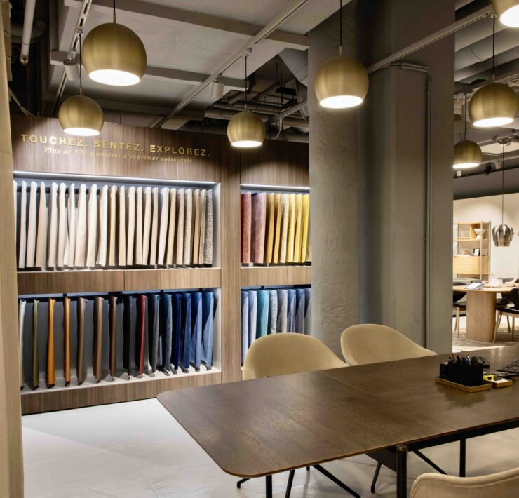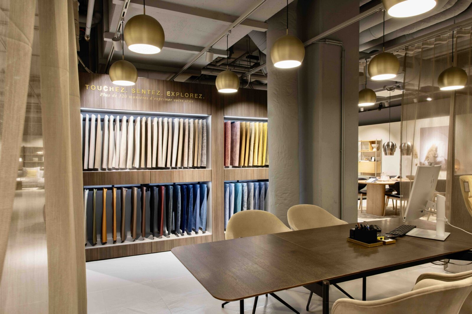 « Désormais, conclut le même communiqué, le magasin de Beaugrenelle s’habille lui aussi d’un design intimiste et végétalisé, avec un cœur dédié aux projets de décoration d’intérieur. L’installation de voilages apporte un effet chaleureux à cet espace, où les murs s’équipent de différents revêtements, du cuir au tissu, en passant par le bois et les céramiques, permettant une visualisation réaliste de la personnalisation du mobilier. Le reste de l’espace se découpe en plusieurs studios séparés, donnant du rythme et du relief au showroom ».