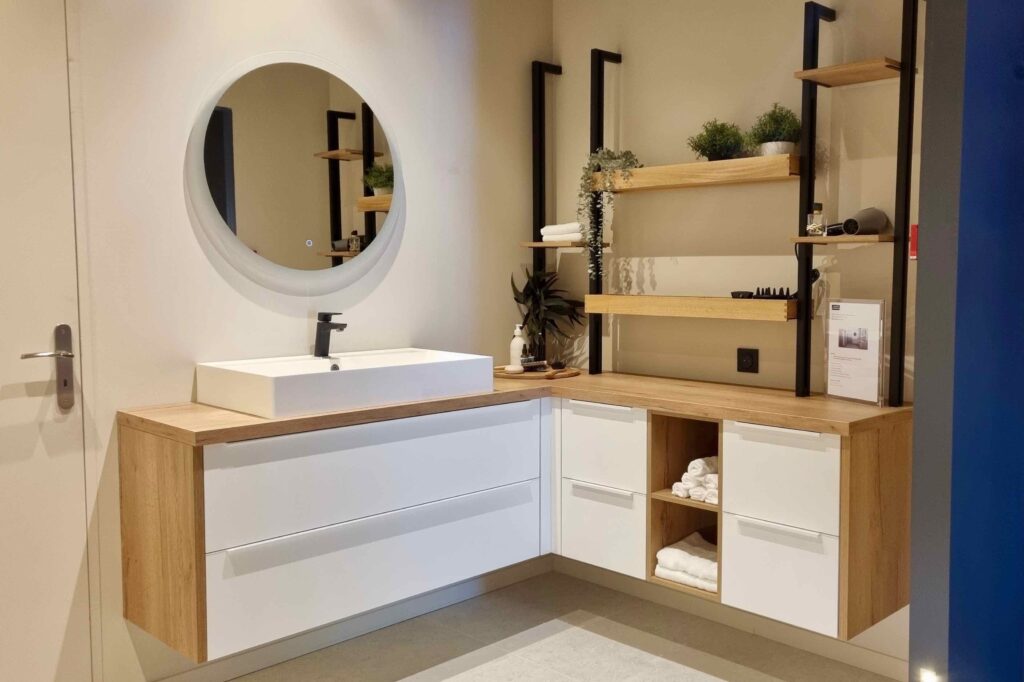 Six cuisines d’exposition, une arrière-cuisine-buanderie, une salle de bains, un dressing et un espace télévision & bureau : agencé tel un “magasin maison”, ce nouveau showroom propose un large choix de produits, ainsi que des expositions très différentes. « Nous avons volontairement souhaité positionner notre magasin de Bègles plus haut de gamme que nos autres showrooms, a expliqué Romain Detrieux. L’objectif de cet établissement est de montrer le large choix de produits que nous proposons et surtout notre capacité à réaliser des aménagements complexes et techniques. Nous sommes tous les deux d’anciens poseurs et avons la capacité de réaliser des projets de cuisines et autres pièces sur mesure. C’est ainsi que nous avons pensé et créé notre showroom, avec quelques implantations atypiques, représentatives de notre savoir-faire ». Et de poursuivre : « Avec nos concepteurs-vendeurs, nous proposons à nos clients un accompagnement ultra personnalisé. Écoute active de leur projet, visites à domicile, un seul référent qui maîtrise parfaitement leur projet… : nous savons prendre la mesure de l’importance qu’a la réalisation d’une cuisine ou d’une autre pièce de la maison pour eux. Un accompagnement haut de gamme se traduit aussi par ce type de prestation. »