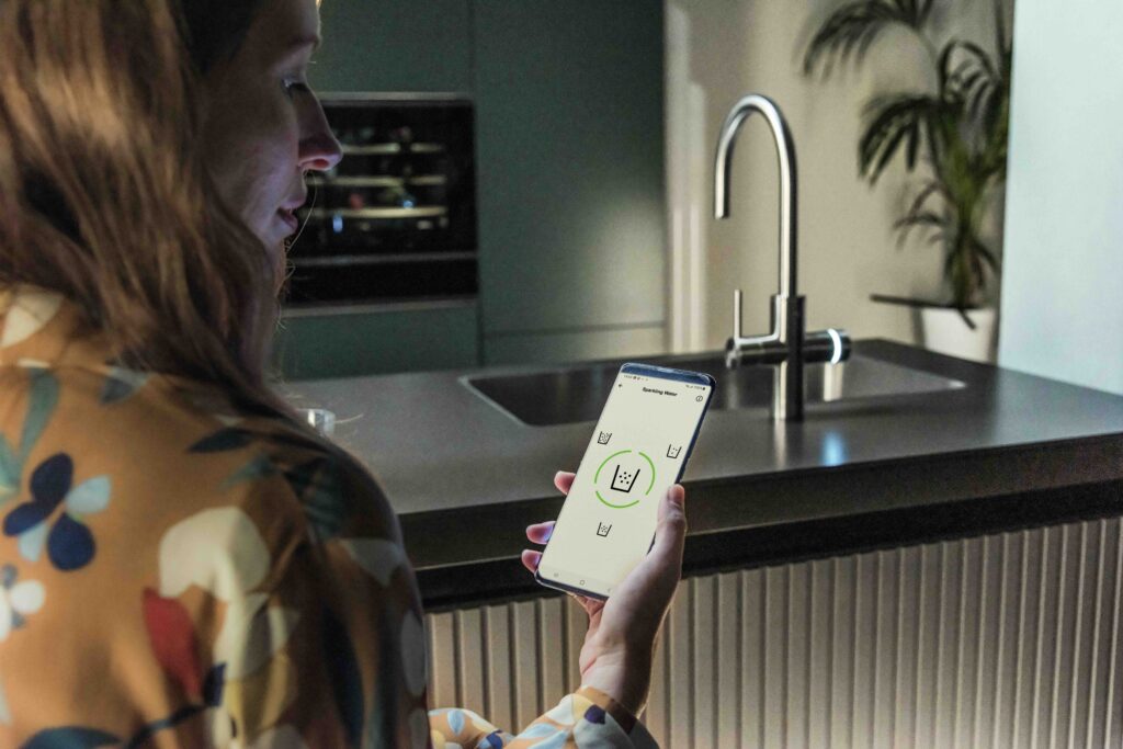 Grâce à une application dédiée, il est possible de régler à distance les paramètres d’eau selon les préférences de chacun et de gérer facilement les commandes, où et quand cela est nécessaire. Dans les paramètres, le consommateur peut notamment définir le style de bulles pour la fonction “pétillante” et régler la quantité d’eau distribuée pour les fonctions d’écoulement continu (de 50 cl à 3 l). La sécurité enfant peut en outre être activée pour bloquer l’accès à l’application, assurant ainsi une sécurité supplémentaire dans la cuisine.