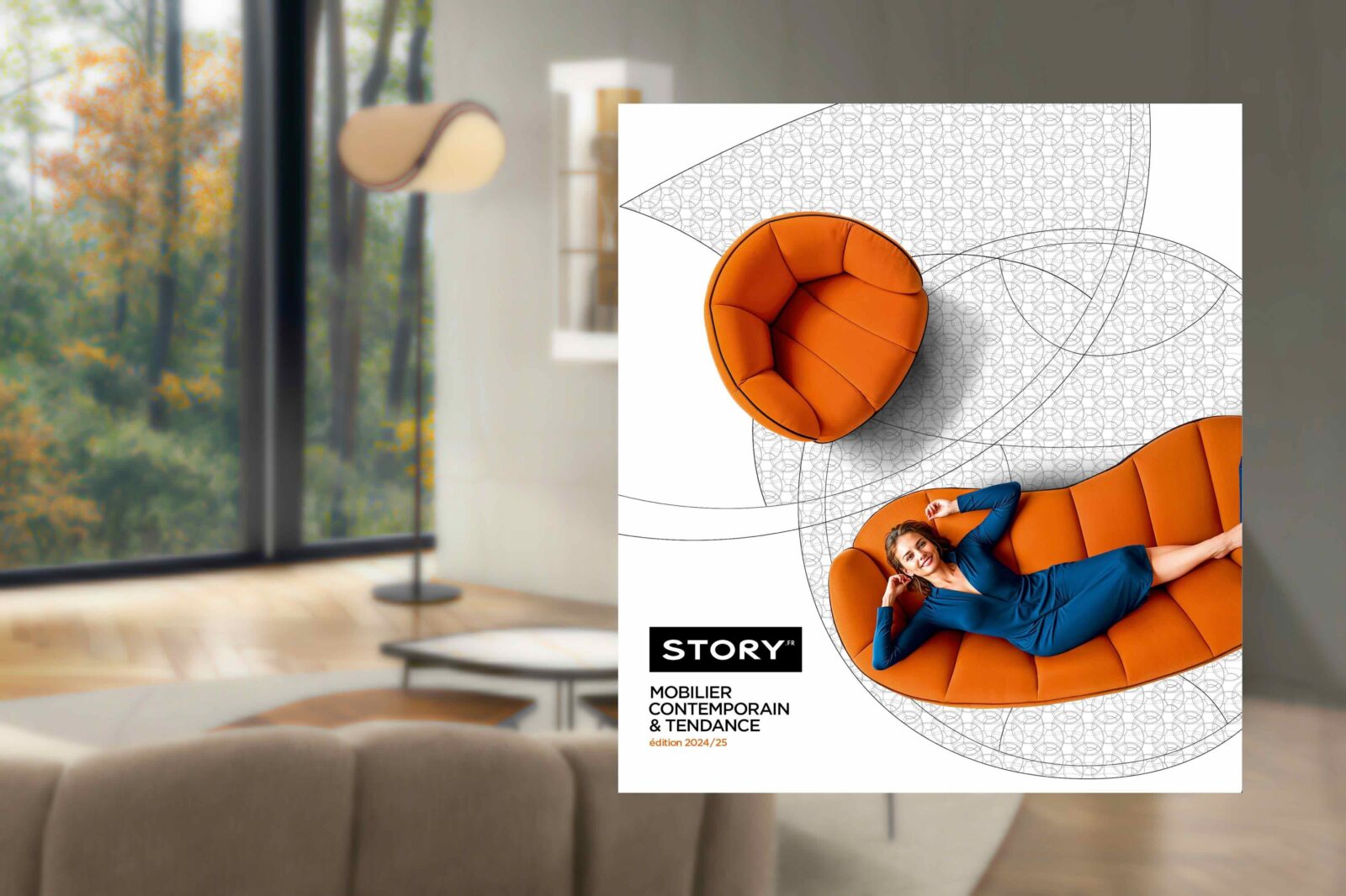 Cette édition 2024 du catalogue Story (100 pages, dont la conception a nécessité deux mois de préparation), met notamment en lumière les grandes tendances de l’année, avec une forte influence du retour du vintage, reflété dans des formes organiques et des lignes arrondies. La demande croissante des consommateurs pour des matériaux rassurants (bois, tissus texturés et doux…), est également prise en compte.