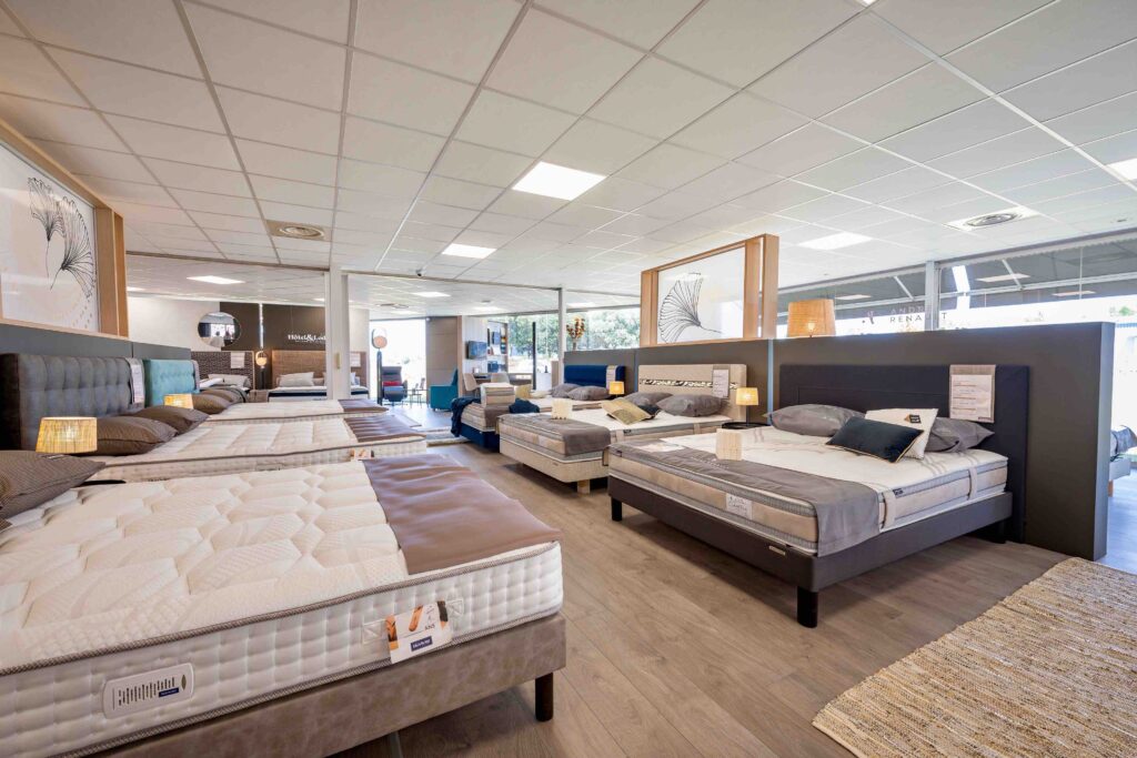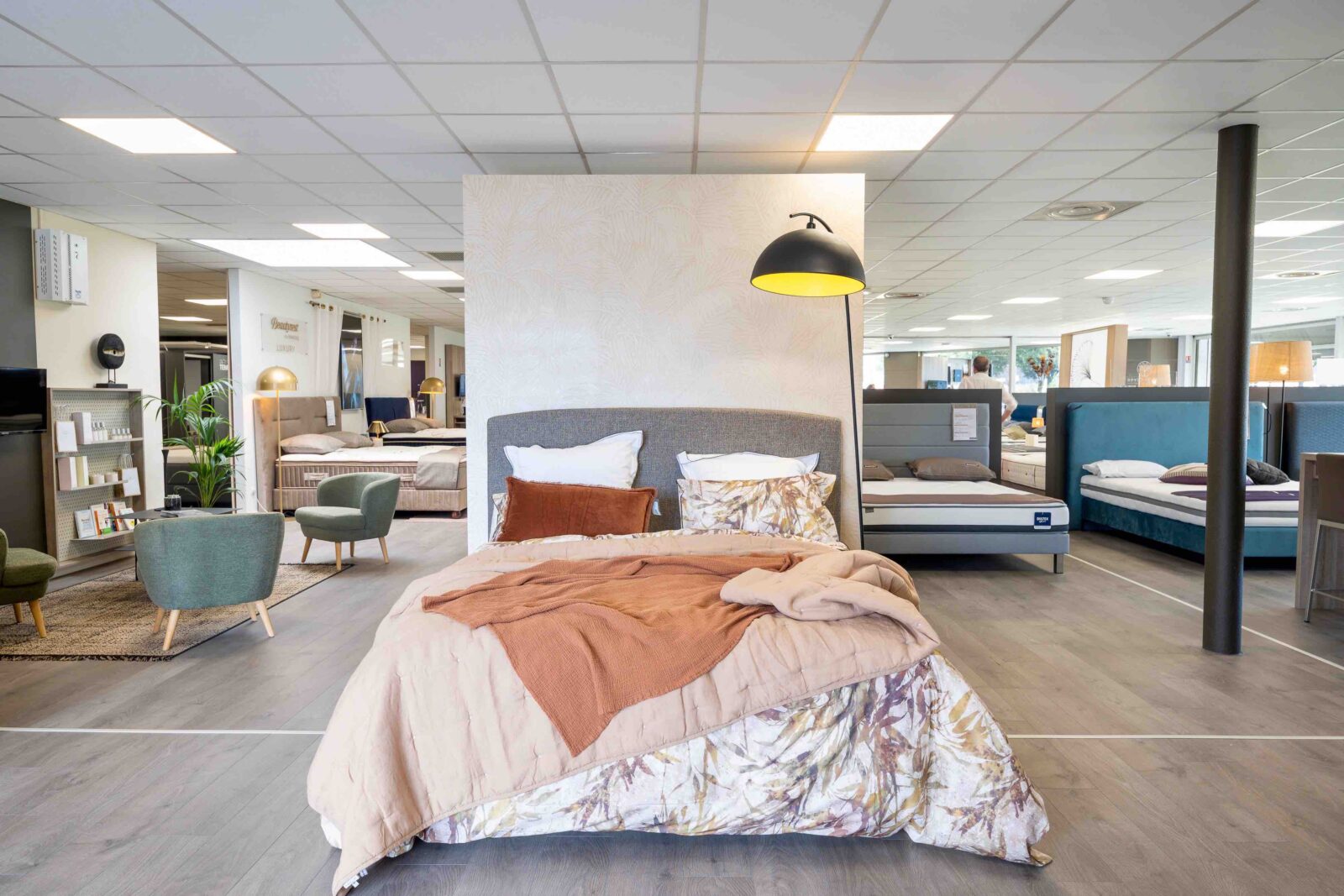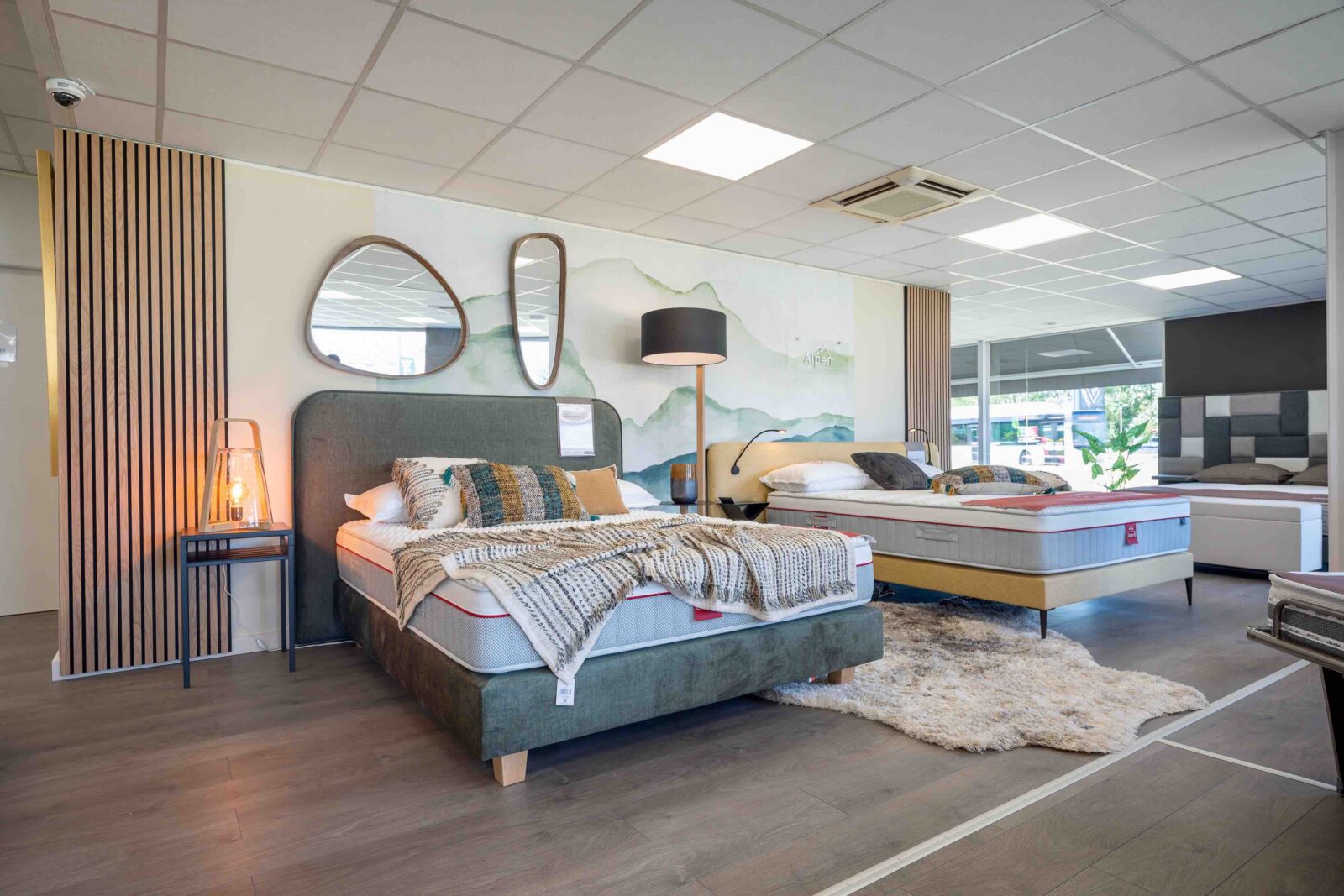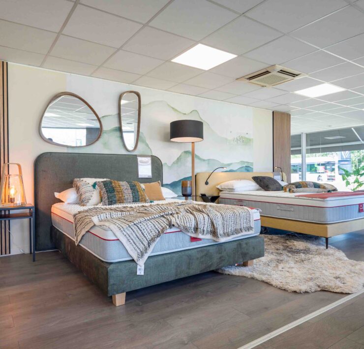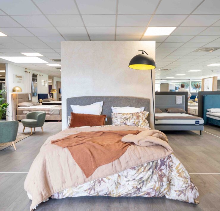 Imaginé par une styliste autour des notions (chères à l’enseigne depuis de nombreuses années) de bien-être, de confort et de sérénité, afin d’offrir au consommateur une expérience inédite et mémorable, ce nouveau concept, dont la “mise en bouche” commencera par un ensemble “expo-déco” placé dès l’entrée du magasin (effet “waouh” garanti !), comportera (en résumant à l’extrême) les éléments essentiels que sont “L’Espace Bien-Être” (brumes d’oreiller, parfums d’ambiance…) et “L’Atelier” (conseils d’experts, personnalisation…), mais va surtout véritablement faire franchir un cap important à l’ensemble des magasins du réseau en matière de mise en scène, de valorisation des marques et de décoration. Objectif, dixit Virginie Mathe, responsable marketing et communication de l’enseigne depuis mai 2022 : « Offrir à nos consommateurs un havre de tranquillité et de confort, qui facilite la montée en gamme. » Dans ce cadre notamment, les marques et leurs produits bénéficieront de cloisons basses surmontées de plexiglas transparents sur lesquels seront gravés uniformément leurs logos. But avoué de cette nouvelle façon de “merchandiser” : valoriser les marques dans leurs univers respectifs, mais ceci au sein d’un ensemble cohérent, ambiancé “Grand Litier”. Différents espaces seront par ailleurs matérialisés par des cloisons plus hautes, de trois couleurs différentes, ainsi que par des menuiseries décoratives assorties, encadrant des vitrages imprimés de motifs décoratifs du plus bel effet. Enfin, outre les traditionnels linges de lit, accessoires et produits de para-literie, habilement disposés autour des matelas, sommiers, chevets et autres têtes de lits : une multitude d’éléments décoratifs ! Au menu : rideaux, tapis, images encadrées, luminaires, bougies, vases, plantes, miroirs…