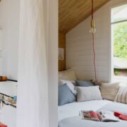 Tout est parti d’un rêve, celui de concrétiser un lieu clos, dédié à l’évasion, au recueillement sur soi et à l’ouverture à la nature ; d’y faire parler les matières aussi, les rangements, les recoins… Le nom de cette “pièce concept” inédite : la “cabane”, tout simplement.