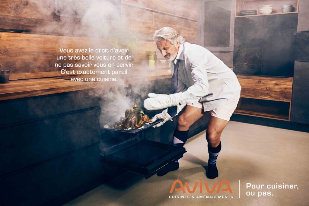 Pour accompagner le lancement de cette nouvelle plate-forme de marque et de cette signature inédite (qui se veulent à la fois « honnêtes » et « libératrices »), Cuisines AvivA déploie une campagne d’affichage imaginée par l’agence Grinta qui, par le biais de six visuels à la fois audacieux et pleins d’humour (cf. nos illustrations), met en scène six profils, dont on nous dit qu’ils sont « bien réels, ou en tout cas très familiers ». L’esprit, selon leurs concepteurs : « Chacun à sa manière incarne cette vérité : la cuisine se conceptualise selon ses envies, ses contraintes, ses compétences. Car oui, certains sont des petits cuistots en herbe, d’autres pas du tout. Et ce n’est pas une raison pour ne pas avoir une cuisine parfaitement pensée, adaptée et adaptable. »