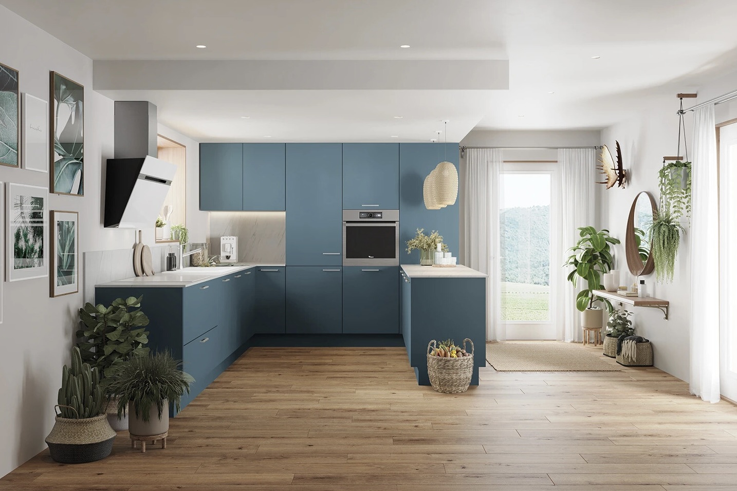 Image d’ouverture : Cuisine “BUDAPEST Bleu Acier”. (© Cuisines AvivA.)