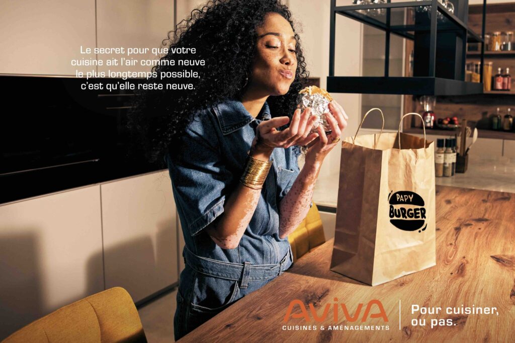Un des six visuels de la campagne d’affichage déployée par Cuisines AvivA (et imaginée par l’agence Grinta) pour accompagner le lancement de sa nouvelle plate-forme de marque.