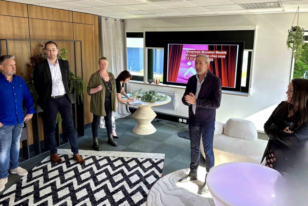 Dans cet esprit et comme une avant-première de ce que devront présenter les magasins à la rentrée, ce showroom proposait donc une expérience immersive et entièrement personnalisée. Chaque espace était pensé comme « une mise en scène émotionnelle », conçue pour éveiller le désir du futur consommateur et inspirer ses projets d’aménagement. Objectif stratégique : afficher « une signature unique » Monsieur Meuble, afin d’affirmer sa différence dans un univers de plus en plus concurrentiel.