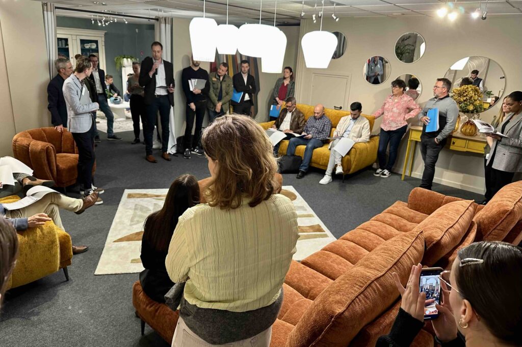 Concernant le contenu même de ce showroom 2025, avant que Simon Denecker n’en dirige la visite technique à l’intention des adhérents présents, Karène Sagot (chef produit “déco et merchandising” de l’UCEM) en a livré l’esprit et l’ambition ; édifiant. « Fini, les parcours clients linéaires et les ambiances figées, a-t-elle lancé. Place à l’exploration libre, à l’inattendu, à l’émotion. Chaque zone devient une scène ouverte à l’inspiration, une invitation à se projeter dans son propre chez-soi. On décloisonne les styles, on réinvente les associations, on revendique des partis pris audacieux et assumés. Ici, le style s’affirme et chaque visiteur devient créateur de son expérience ». Objectif de ce showroom en d’autres termes : casser les codes et oser la surprise. « Parce que le style ne se décrit pas, il se vit, a poursuivi la chef déco. Chez Monsieur Meuble, ce n’est pas le produit qui impose la tendance, c’est chaque client qui imagine, façonne et affirme son propre univers ». Et de conclure : « Notre signature – “Et vous êtes bien chez vous.” – prend ici tout son sens. Bien plus qu’un slogan, c’est une véritable promesse d’épanouissement chez soi. »