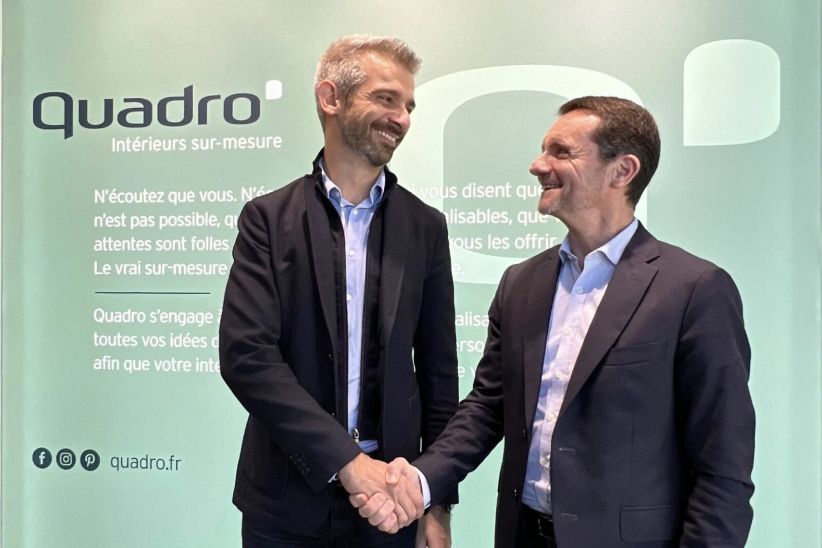 Après avoir porté et mis en œuvre l’approche de « co-construction des aménagements avec leurs utilisateurs », propre à la bannière “Quadro – Intérieurs sur-mesure”, ceci pendant neuf ans, Laurent Raymond (à droite sur notre photo), directeur général de l’enseigne depuis 2018, a choisi de passer le flambeau à Slav Savov (à gauche), directeur du développement depuis les débuts. Ensemble, ils ont lancé, structuré et développé le réseau Quadro qui, en l’espace de quatre ans et demi, a doublé de taille, pour atteindre aujourd’hui les 82 magasins.