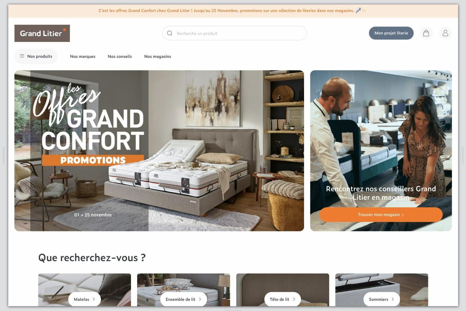 Pour parvenir à ce résultat, l’enseigne a choisi Yumans, agence de conseil et de design UX/UI (“User Experience” – expérience utilisateur / “User Interface” – interface utilisateur), spécialisée dans la conception centrée utilisateur. Ensemble, elles ont réalisé une étude complète auprès de prospects et de clients Grand Litier, l’objectif étant d’offrir une expérience en ligne à la hauteur de l’accueil en magasin. Le site, initialement orienté e-commerce, propose désormais une approche plus servicielle et largement optimisée pour générer du trafic en point de vente.