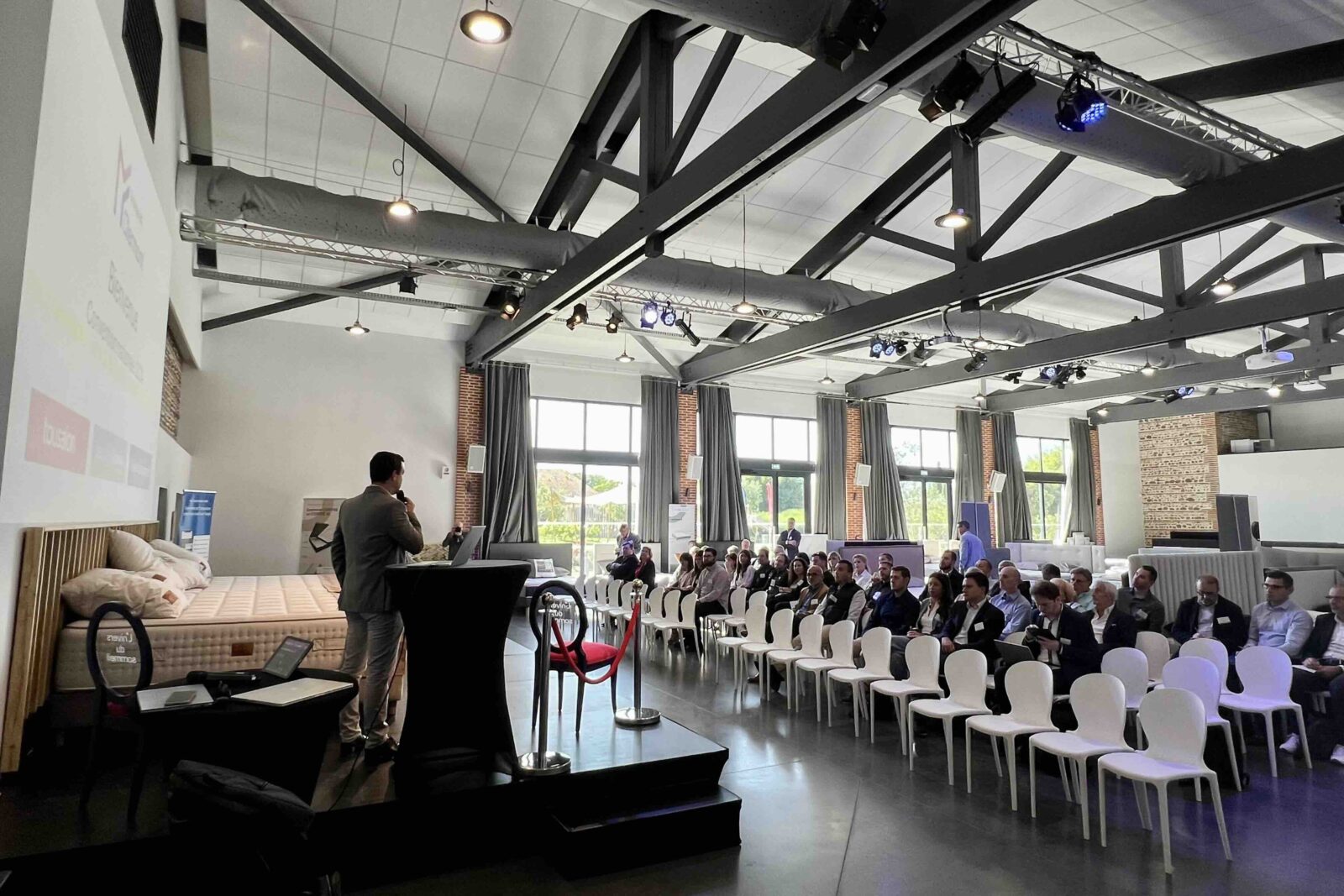 Ceci étant dit, alors que l’après-midi aura été consacré à la découverte des deux showrooms (l’un pour l’espace salon dédié à Tousalon, l’autre pour l’espace literie dédié aux enseignes Place de la Literie et Univers du Sommeil), des produits présentés et de leurs fournisseurs, la première partie de cette réunion a vu se succéder sur scène plusieurs entreprises prestataires sélectionnées par la centrale pour, à la fois, parfaire l’assistance du groupe aux adhérents et développer de nouveaux outils.