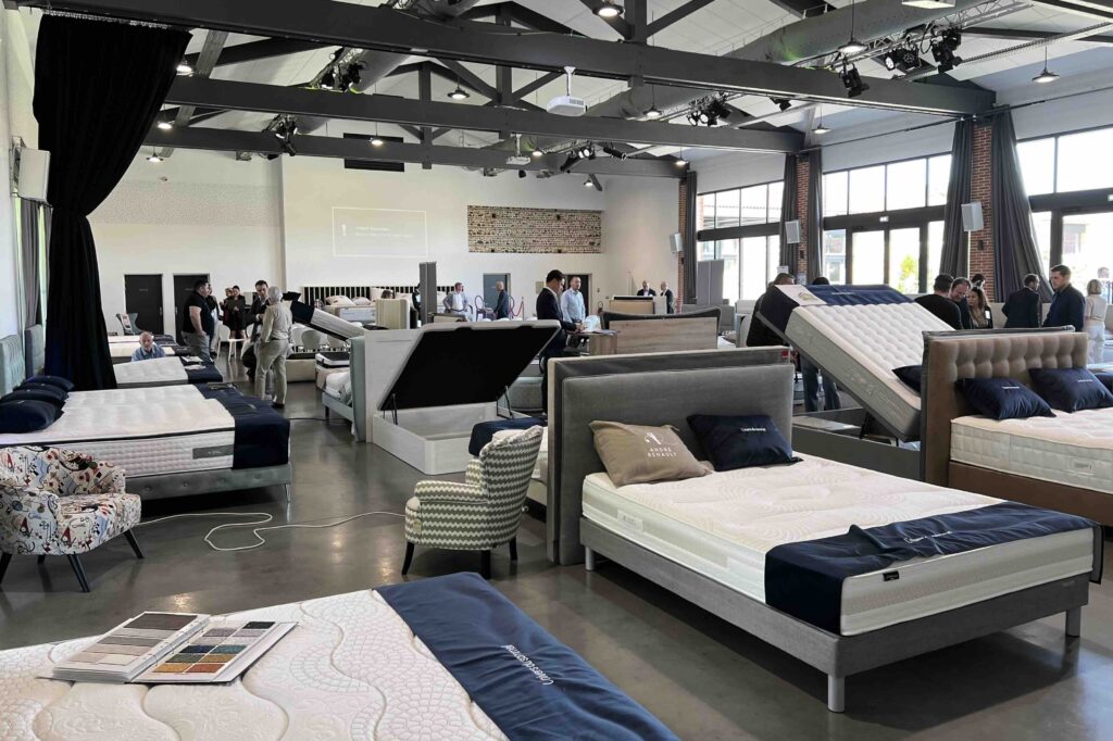 Faire venir les consommateurs en magasin et leur préparer une expérience client de qualité, c’est bien. Leur offrir l’écrin à la hauteur de leurs attentes, qui soit en outre capable de drainer du chiffre d’affaires et de la marge, c’est mieux ! En la matière, c’est à Joël Manchon, directeur des enseignes Univers du Sommeil et Place de la Literie, qu’est revenue la lourde tâche de présenter les nouveaux concepts élaborés pour les deux bannières. Pas de points de vente “pilotes” pour le moment (les concepts ont été conçus en un temps record : quatre mois) ; une directive, émanant de Mickaël Fauré, de créer deux enseignes « premium » ; et une définition précise de ce à quoi devront, à terme, ressembler les points de vente du groupe : telle était la feuille de route confiée à Joël Manchon. Et voici la synthèse de ce à quoi elle a abouti (voir aussi notre galerie d’images en ouverture et nos illustrations ci-contre).